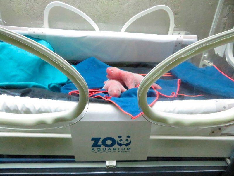 Vídeo mostra como um deles vem ao mundo, ainda sem pelo. Filhotes são totalmente dependentes da mãe por quatro meses. Pandas gêmeos nascem em zoológico na Espanha Uma panda gigante deu à luz dois filhotes gêmeos nesta segunda-feira (6) no Zoológico de Madri, fato considerado pela instituição como “uma grande