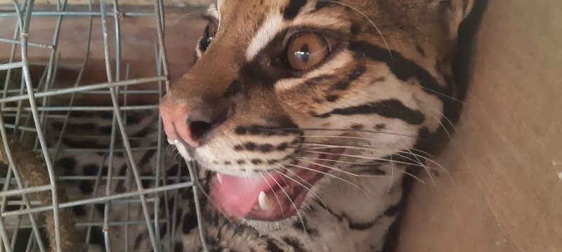 Jaguatirica é resgatada ao tentar fugir de área com foco de queimada no Pará