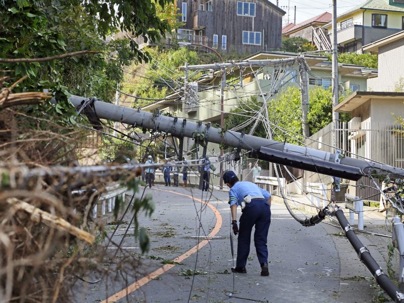 Tufão Faxai que atingiu Tóquio, no Japão, provocou danos em Kanagawa Jiji press / AFP Com ventos que ultrapassam 200 km/h, o furacão Faxai já obrigou o governo do Japão a cortar a energia de 900 mil casas, a cancelar mais de 130 voos, a desligar as linhas de trem