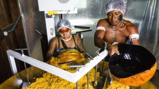 Óleos naturais, pimentas, castanhas e cogumelos nativos estão entre itens produzidos por indígenas brasileiros que vêm recebendo reconhecimento internacional e atraindo atenção de grandes marcas, oferecendo alternativas a atividades que destroem meio ambiente. Miniusina dentro de aldeia da Terra Indígena Wawi transforma a polpa do pequi em óleo; 2018 teve