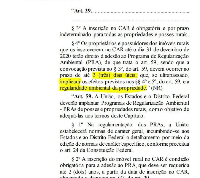 Parecer diz que estados deverão convocar produtores rurais cadastrados em até 3 dias úteis e, caso não consigam, o fato “implicará” na “regularidade ambiental”. Entidades criticam medida e dizem que ela deverá regularizar 19 milhões de hectares desmatados. Relator nega e diz que propriedades ainda poderão ser vistoriadas. Uma alteração