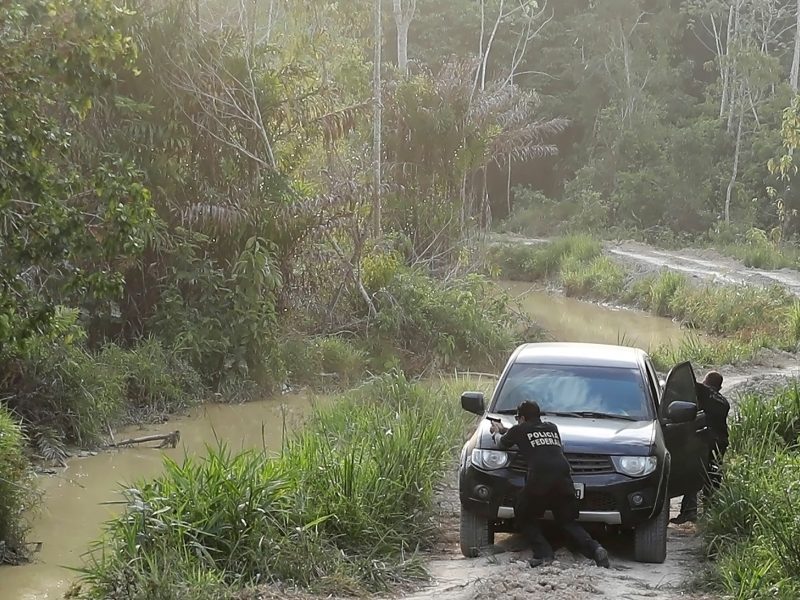 Eles realizavam uma fiscalização em área de garimpo perto da Terra Indígena Ituna/Itatá, quando foram surpreendidos por tiros vindos da mata. A Polícia Federal revidou. Ninguém ficou ferido. Agentes da Polícia Federal revidaram tiros em operação do Ibama no Pará. REUTERS/Nacho Doce Fiscais do Ibama e policiais federais são alvos