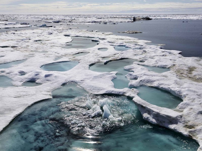 Aquecimento global agrava o degelo de solos congelados e pode trazer de volta vírus e bactérias que ficaram presos no passado. Gelo está derretendo no Mar de Chukchi, na costa do Alasca. Imagem feita pela embarcação enquanto atravessava o noroeste de Ártico, neste domingo (16) David Goldman/AP Photo Os solos
