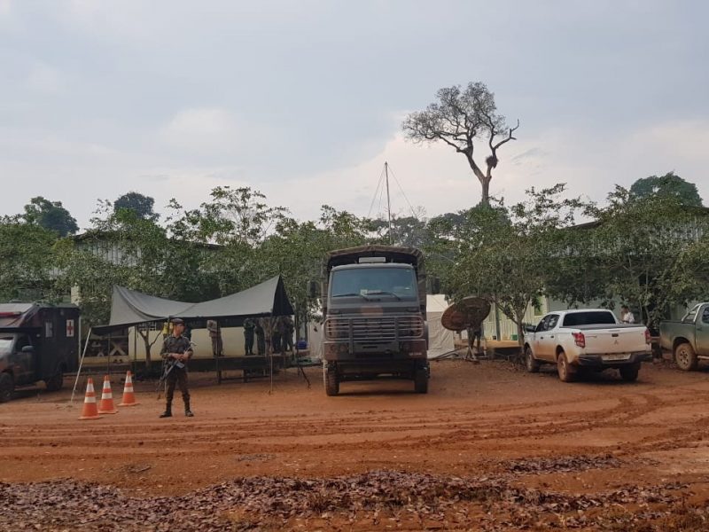 Ação está sendo feita na reserva Jacundá, em Porto Velho, e faz parte da Garantia da Lei e da Ordem (GLO) assinada por Bolsonaro. Base do Exército montada em reserva de Porto Velho EB/Divulgação O Exército Brasileiro (EB) iniciou nesta segunda-feira (26) uma operação com 100 militares para combater as