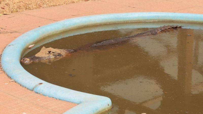 Jacarés se refugiam em piscina para escapar de fogo e seca no Pantanal