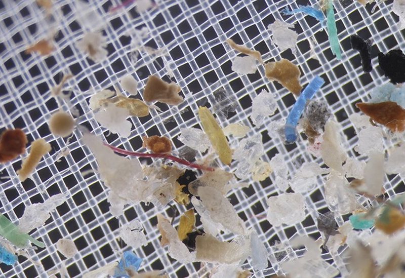 Pesquisadores usaram um helicóptero para aterrissar em campos de gelo e retirar amostras. Essa forma de poluição ameaça vida marítima mesmo nas águas mais remotas do planeta. Microplásticos acabam sendo ingeridos na água por animais e até seres humanos. Julie Steinberg/University of Delaware Pedaços minúsculos de plásticos foram encontrados em