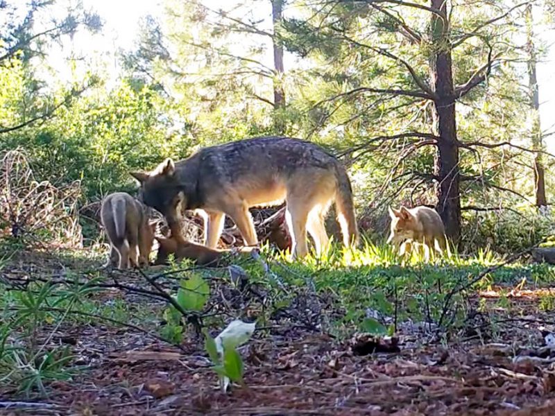 Dispositivo havia sido proibido depois de ferir uma criança; em 2018, 6.579 animais morreram em decorrência do efeito dele, entre eles guaxinins, gambás e um urso. Imagem de lobo e três filhotes capturada por um vídeo de monitoramento no norte da Califórnia, em agosto de 2019 California Department of Fish