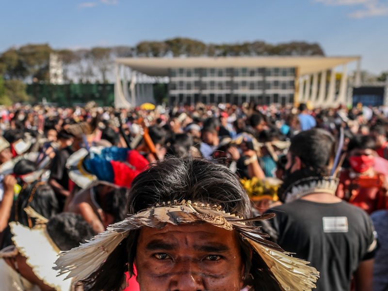 Estudo do MapBiomas comprova a tese de que TIs são importantes contra o desmatamento no país. Na contramão, o congresso discute aprovar PL que dificultará e até extinguirá a demarcação desses territórios em alguns casos. Indígenas de diversas regiões do país protestam na Praça dos Três Poderes, em Brasília, nesta