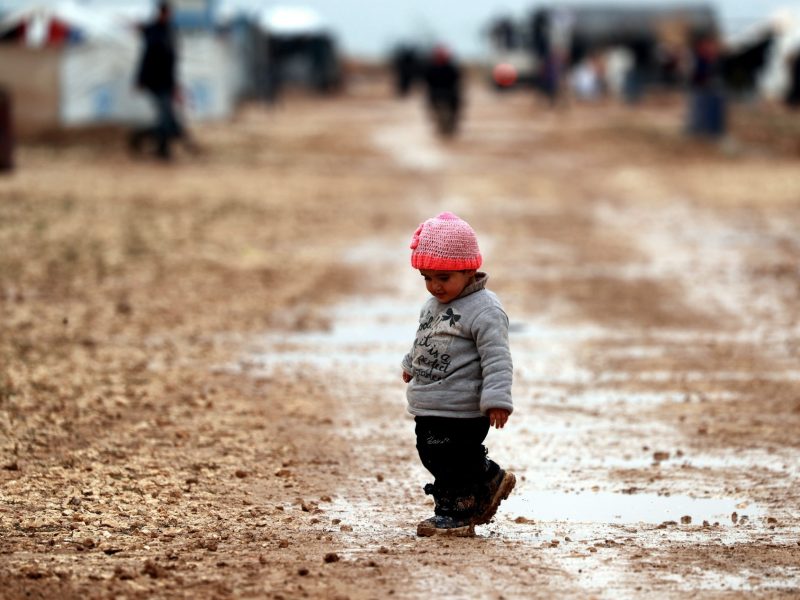 Um menino, cuja família foi obrigada a deixar Deir al-Zor e seus arredores, caminha pela lama de um campo de refugiados perto de al-Arishah, na província de Hasaka, na Síria Delil Souleiman/AFP A foto do salvadorenho Óscar Alberto Martínez Ramírez, de 25 anos, e sua filha Valeria, de um ano
