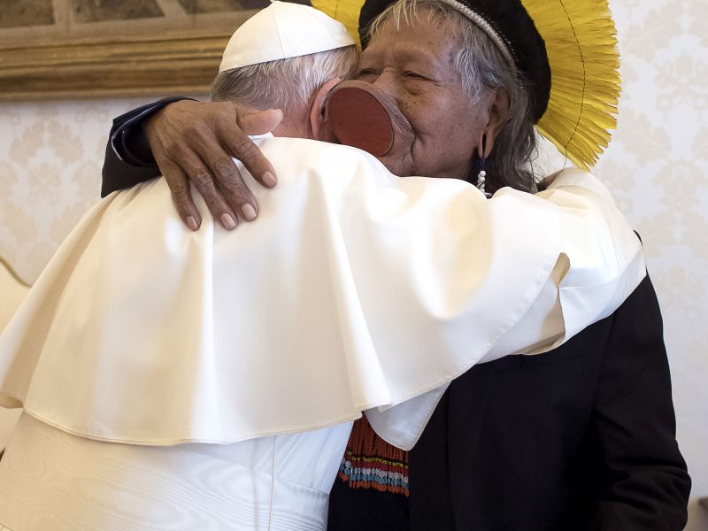 Convocado pelo Papa Francisco, Sínodo dos Bispos deve questionar o modelo de desenvolvimento da região, que abrange territórios de nove países. A maior parte está no Brasil. Papa Francisco abraça líder indígena Raoni, no Vaticano Vatican Media / AFP O Papa Francisco convocou ao Vaticano bispos dos nove países que