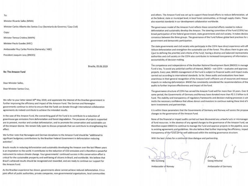 Noruega e Alemanha se posicionam contra a proposta de mudança do governo para o Fundo Amazônia