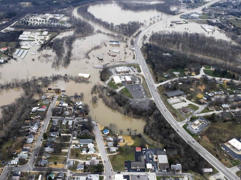 Área central do país tem enfrentado meses de inundações recordes em regiões banhadas pelo sistema fluvial do rio Mississippi. Ruas e casas submersas são vistas após vários dias de chuva que levou à inundação em Union, no estado americano do Missouri. Históricas inundações deixaram 13 mortos no estado, no centro