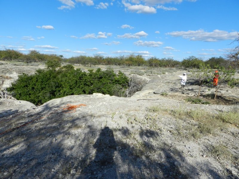 Ação contou até com rapel. Animal está criticamente ameaçada de extinção na caatinga. Por isso, resgate foi prioridade para aqueles que trabalham na conservação da espécie. Onça-pintada passou 22 dias aprisionada em uma caverna em Sento Sé, na Bahia. Imagem mostra grupo de resgate perto do local onde a onça