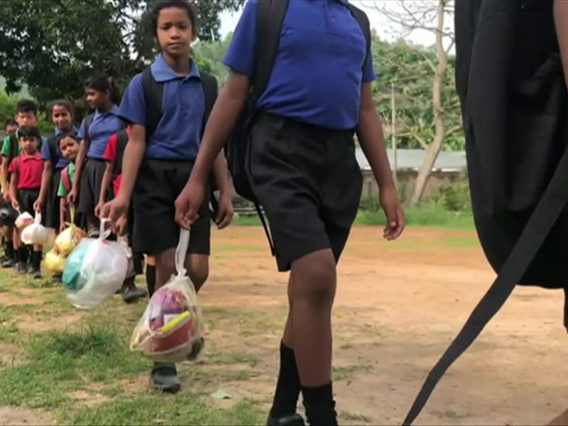 Toda semana, alunos trazem pelo menos 25 itens de plástico descartável à instituição; ideia é ensiná-los sobre noções comunitárias básicas – e a evitar queima de plásticos para fins de aquecimento em região aos pés dos Himalaias. Escola na Índia em que as crianças pagam ‘mensalidade’ com plástico. Reprodução/BBC Uma