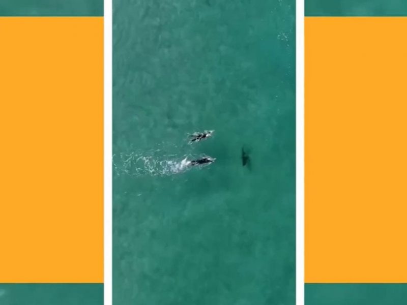 Jason Iggleden faz imagens aéreas incríveis da praia de Bondi, em Sydney, onde banhistas nadam com tubarões sem notar a presença deles. Drone registra banhistas nadando com tubarões sem saber Reprodução/BBC Todos os dias, mesmo antes do sol nascer, Jason Iggleden começa a fazer incríveis imagens aéreas da praia de
