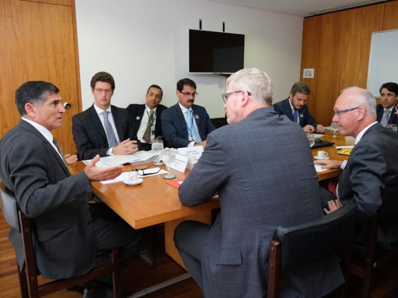 Ricardo Salles se reuniu nesta segunda (27) com embaixadores de Noruega e Alemanha, países que financiam fundo. Governo avalia usar recursos para indenizar desapropriações de terra. O ministro do Meio Ambiente, Ricardo Salles (segundo da esquerda para a direita), durante encontro no Planalto sobre o Fundo Amazônia Wilson Mendes/Secretaria de
