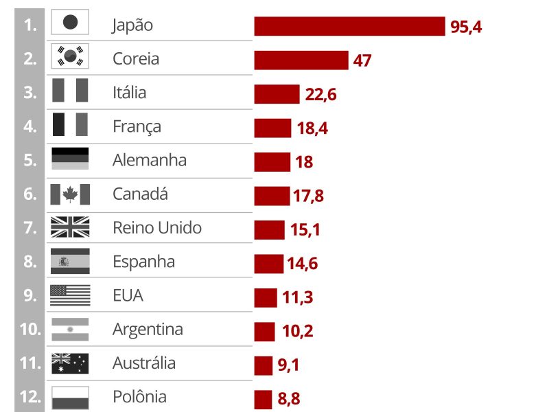 País é o maior consumidor de agrotóxicos do mundo em números absolutos, mas não em relação à área plantada e nem à produção, fica atrás de Japão, União Europeia e EUA. O Brasil é o maior consumidor de agrotóxicos do mundo em números absolutos. Mas perde para Japão, União Europeia