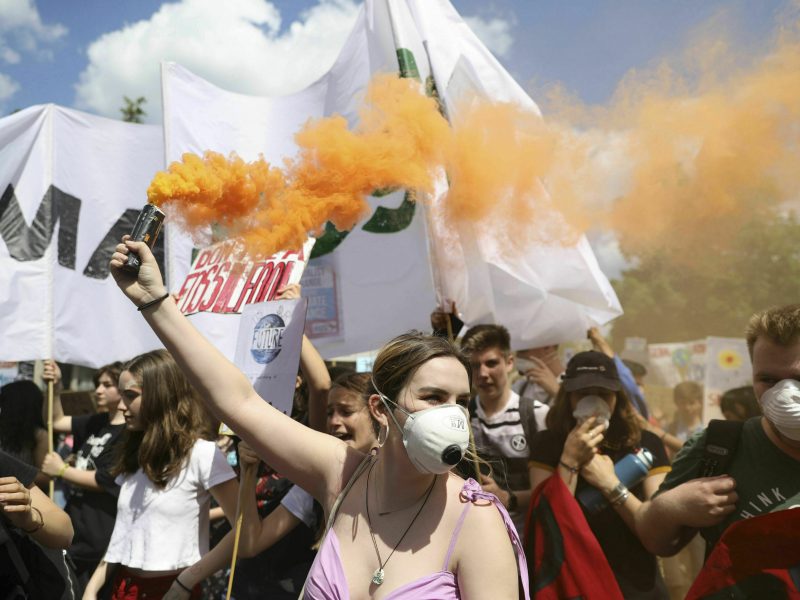 Greve pelo Clima: manifestante empunha um sinalizador durante protesto em Londres nesta sexta (24). Aaron Chown/PA via AP Mais uma vez os jovens estão nas ruas do mundo todo em protesto contra o desrespeito que os adultos estão demonstrando às mudanças climáticas. Querem que os governantes envolvam em suas plataformas