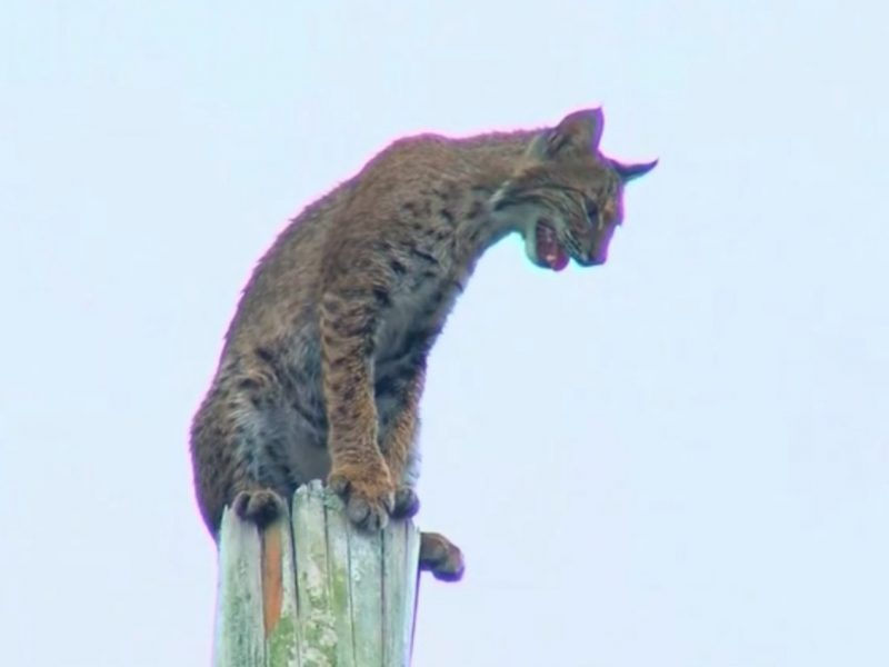 Lince ‘se recusa’ a ser resgatado do topo de poste de eletricidade; veja vídeo