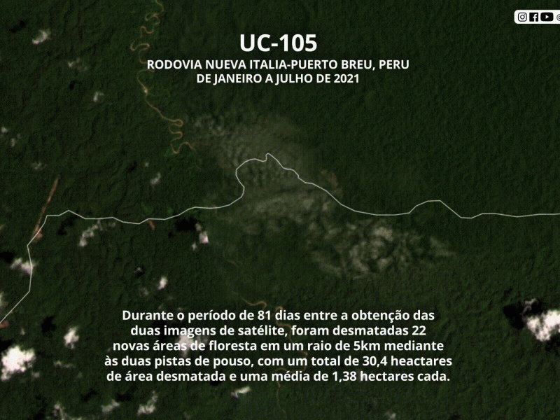Documentos mostram desmatamento com abertura de estrada e foram encaminhados às autoridades brasileiras e peruanas. No Acre, mais de 2,3 mil indígenas devem ser afetados, além da Reserva Extrativista Alto Juruá. Imagens mostram avanço do desmatamento na fronteira do Acre e Peru Arquivo pessoal Entidades indígenas do Acre e do