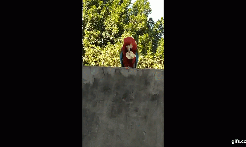 Ave aparece todos os dias pela manhã e é alimentada com frutas pela moradora. Arara se alimenta em muro de casa Rosilene Nascimento/Arquivo pessoal Uma arara vermelha, apelidada de ‘Lara’ ou ‘Loro’, aparece todos os dias para tomar café da manhã na casa da professora Rosilene Nascimento, em Pontes e