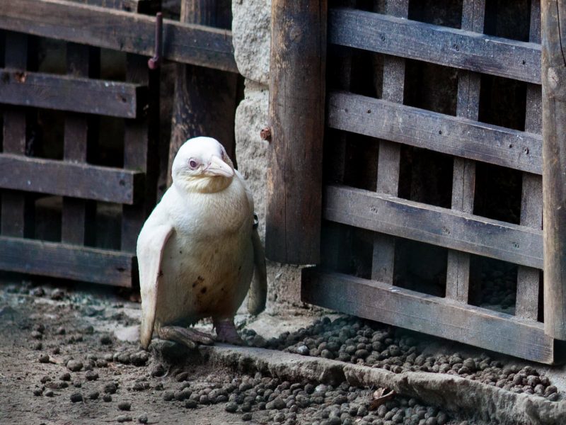 Zoológico polonês apresenta pinguim albino e teme rejeição do bando