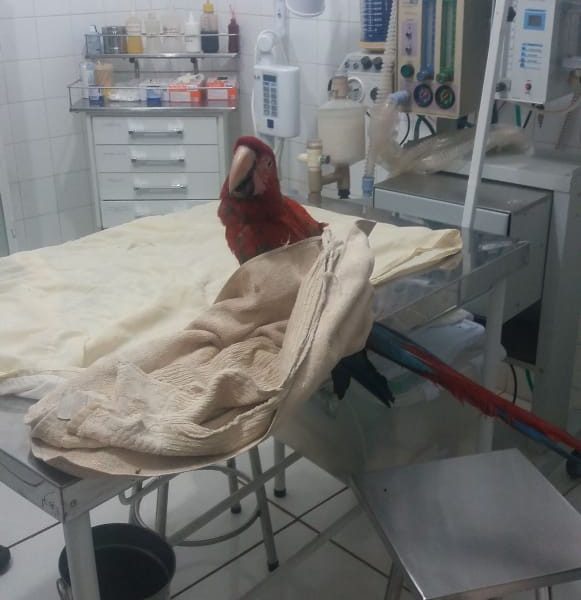 Arara vermelha é resgatada na Rodovia BR-153 em Icém