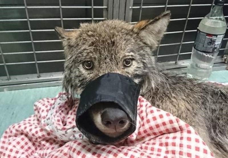 Operários resgatam ‘cão’ de rio congelado e descobrem que era um lobo