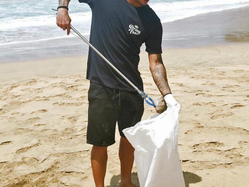 Em Noronha para campeonato de surfe, Gabriel Medina ajuda a recolher lixo da praia