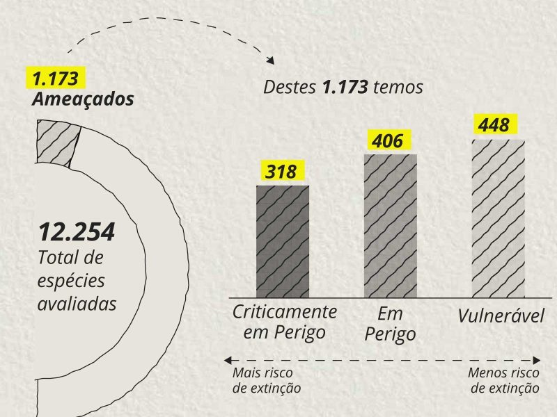 Por Mariana G. MenezesO Livro Vermelho da Fauna Brasileira Ameaçada de Extinção (2018), divulgado pelo Instituto Chico Mendes de Conservação da Biodiversidade (ICMBio), é uma referência sobre o status de conservação de 12.254 espécies. A versão atualizada do estudo mostra que houve um aumento de 546 espécies ameaçadas em relação