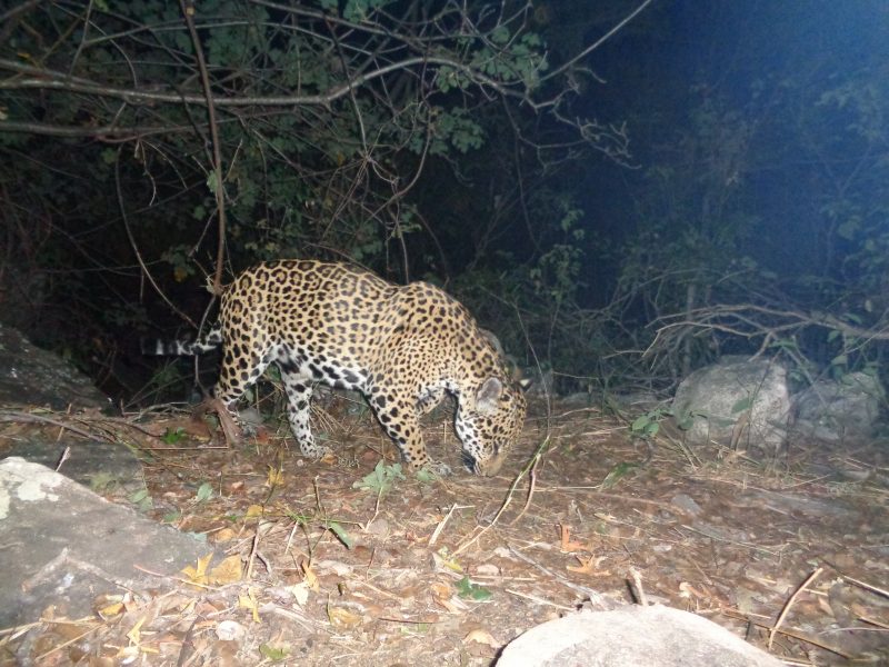 Área abriga a onça-pintada, criticamente ameaçada de extinção, e a onça-parda, que está em perigo de extinção. Caça e presença humana são ameaças constantes. Armadilha fotográfica capta imagem da onça-pintada no Boqueirão da Onça, em agosto de 2018. Claudia Campos/Arquivo Pessoal Bastou um rastro. A pegada de uma onça-pintada na