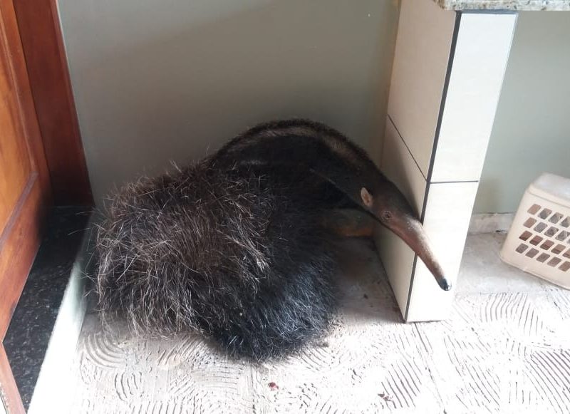 Tamanduá-bandeira é resgatado pelos bombeiros em garagem de casa em Iaras