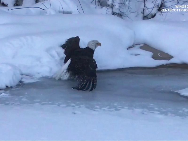 Onda de frio: o resgate da águia impedida de voar por bola de gelo presa às penas