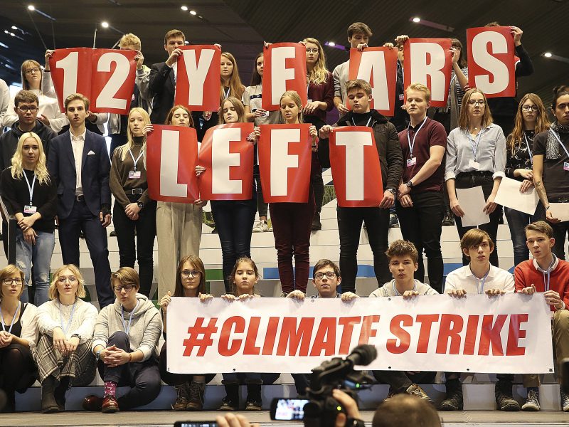 No último dia da reunião na Polônia, países tentam definir o “livro de regras” do Acordo de Paris, firmado em 2015. Adolescentes poloneses fazem um protesto na conferência climática da Organização das Nações Unidas (ONU) em Katowice, Polônia. São os últimos dias de negociações para instar líderes de quase 200