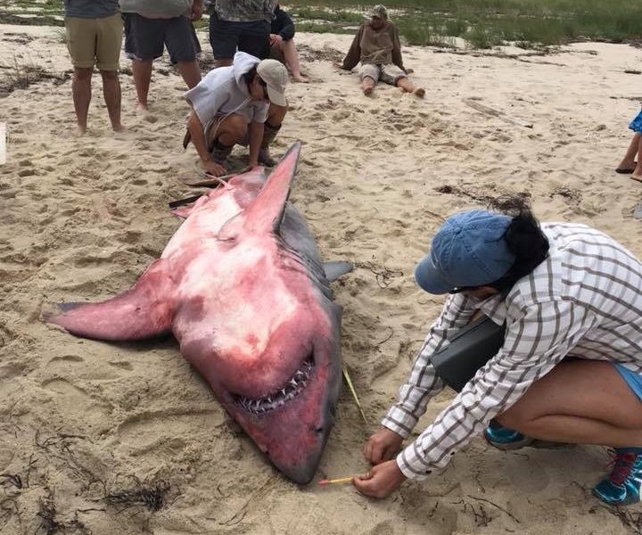 Tubarão-branco é encontrado morto com tonalidade avermelhada e três pesos de chumbo dentro do corpo