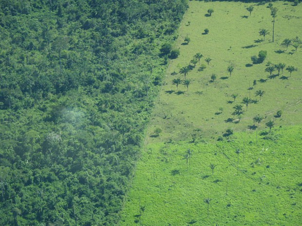 Maior parte do dinheiro estrangeiro injetado em grandes empresas de soja e carne brasileiras, setores ligados ao desmatamento, vem de paraísos fiscais, como Bahamas e Ilhas Cayman, apontam pesquisadores. Imagem aérea mostra desmatamento na Amazônia. Perda da cobertura vegetal no bioma pode acarretar na extinção de diversas espécies de animais.