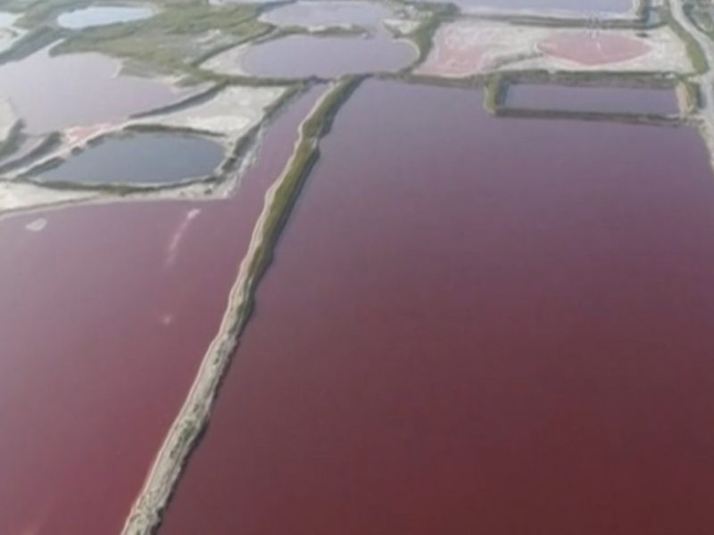 Alta salinidade colabora para proliferação de algas. O lago salgado fica em Yuncheng, no norte da China. Lago da China muda de cor por causa do calor O lago salgado na região de Yuncheng, no norte da China, está chamando atenção pela coloração avermelhada. O forte calor que faz na