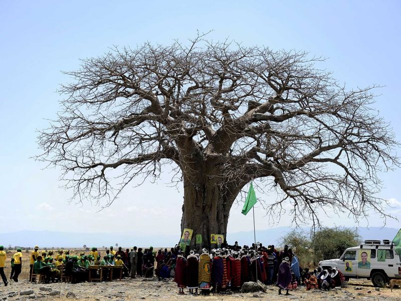 Mudança climática é apontada como possível causa para esse desaparecimento “de escala sem precedentes”. Foto de arquivo de 2010 mostra comunidade reunida sob baobá na Tanzânia. Tony Karumba/AFP Muitos dos baobás mais antigos da África estão morrendo há dez anos, alertaram nesta segunda-feira (11) pesquisadores, que evocam a mudança climática