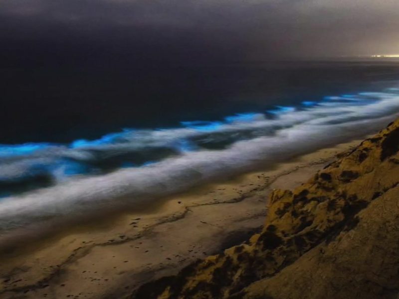 Ondas azul-metálicas brilhantes surpreendem moradores no litoral da Califórnia