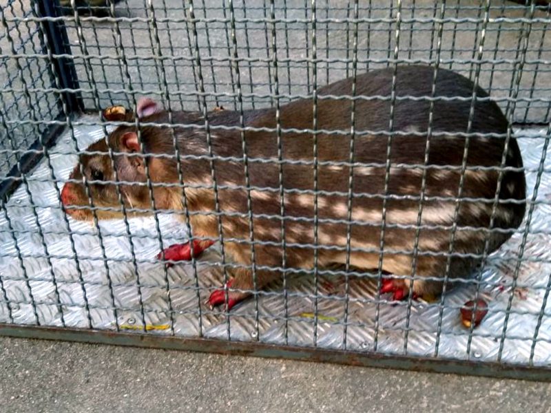 Roedor foi achado com queimaduras nas patas e no focinho em um matagal em chamas no Bairro Banzato. Animal será avaliado por veterinário antes de ser devolvido à natureza. A paca teve ferimentos principalmente nas patas, que foram queimadas Corpo de Bombeiros/Divulgação Uma paca, animal roedor que vive nas matas