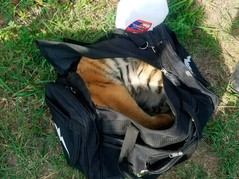 Filhote de tigre é abandonado em mochila na fronteira entre EUA e México