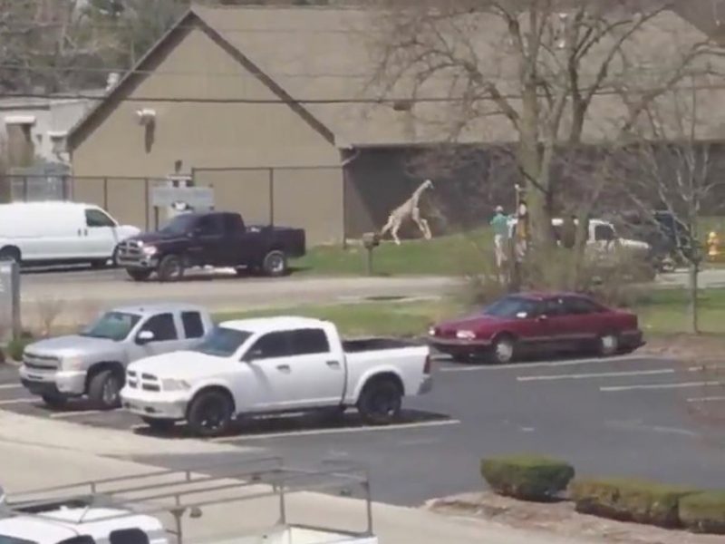 Girafa escapa da jaula em zoológico dos EUA e ‘passeia’ em área próxima a estacionamento