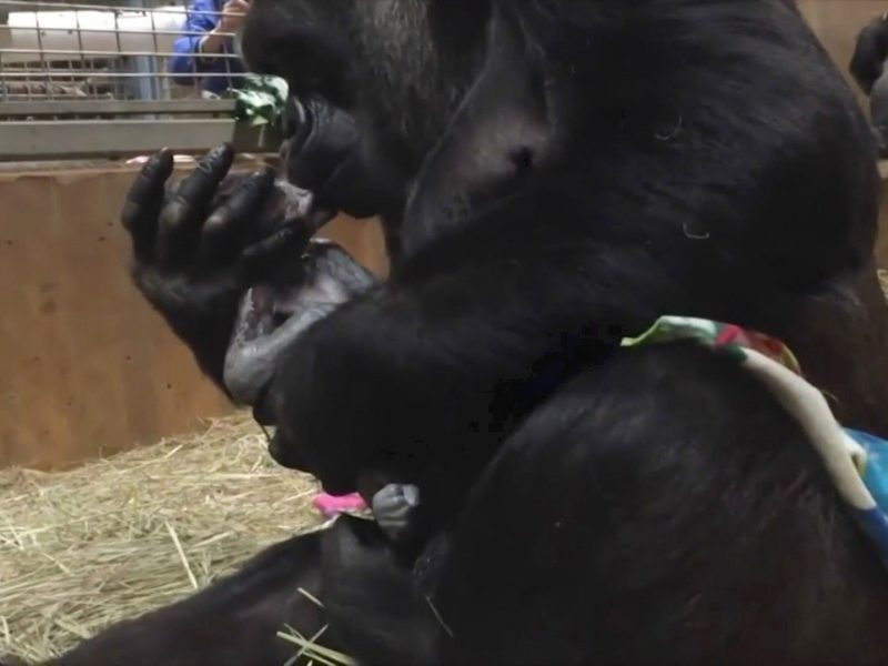 Mãe gorila emociona funcionários de zoológico ao beijar filhote recém-nascido