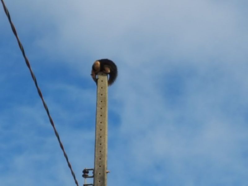Tamanduá sobe no topo de poste e ‘dá trabalho’ para os bombeiros em MT; veja o vídeo