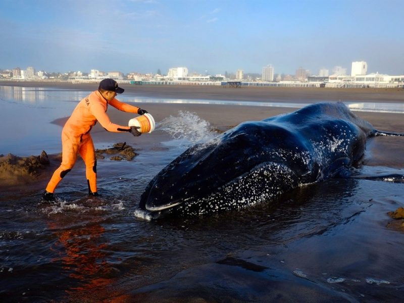 Biólogos tentam desencalhar baleia de 10 toneladas no litoral da Argentina