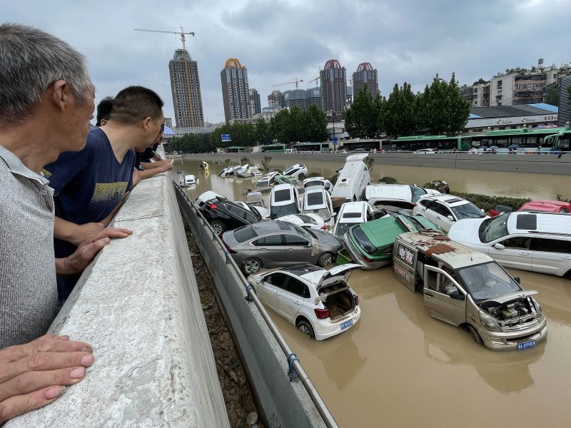 12 pessoas morreram em uma linha de metrô que foi inundada em Zhengzhou. A capital de Henan registrou as chuvas mais fortes em mil anos, segundo autoridades meteorológicas. Chineses olham para carros arrastados pela água após fortes chuvas atingirem a cidade de Zhengzhou, na província de Henan, em 21 de