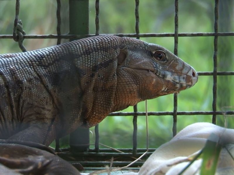 Animal ficou 18 dias em acompanhamento veterinário. Outros dois répteis que também foram atingidos pelo produto em Catanduva (SP) não resistiram à intoxicação. Lagarto que foi atingido por piche em Catanduva (SP) foi reintroduzido à natureza após receber atendimento veterinário em Rio Preto UNIRP/Divulgação Depois de 18 dias em observação,