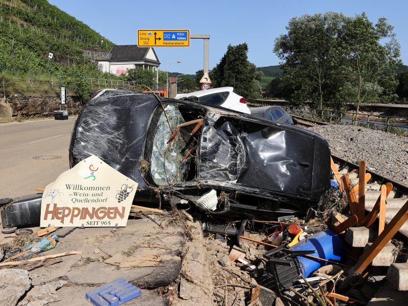 Segundo autoridades, ao menos 189 pessoas morreram e milhares estão desaparecidos por causa das chuvas do últimos dias. Angela Merkel visitou o local das inundações neste domingo (18) na Alemanha. Carro danificado próximo a uma linha férrea em Heimersheim, um subúrbio de Bad Neuenahr-Ahrweiler, Alemanha Wolfgang Rattay/Reuters As inundações na