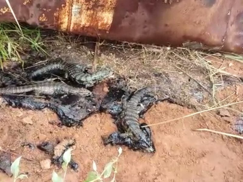 Equipe fazia limpeza em terreno quando mexeu reservatório e répteis foram atingidos por mistura. Veterinários cuidam dos animais em hospital de Rio Preto (SP). Bombeiros resgatam lagartos atingidos por piche em Catanduva O Corpo de Bombeiros (SP) foi acionado na manhã desta quinta-feira (8) para resgatar três lagartos calango que