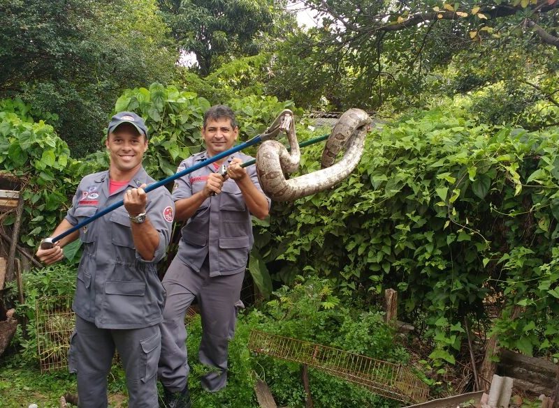 Estatística é do Corpo de Bombeiros, que foi acionado nesta quarta-feira (28) para o resgate de uma sucuri e de uma jiboia. Animais foram devolvidos à natureza. Bombeiros exibem a sucuri de 1,20m resgatada no Jardim Virgínia antes de soltá-la na natureza Corpo de Bombeiros/Divulgação Os casos de cobras que